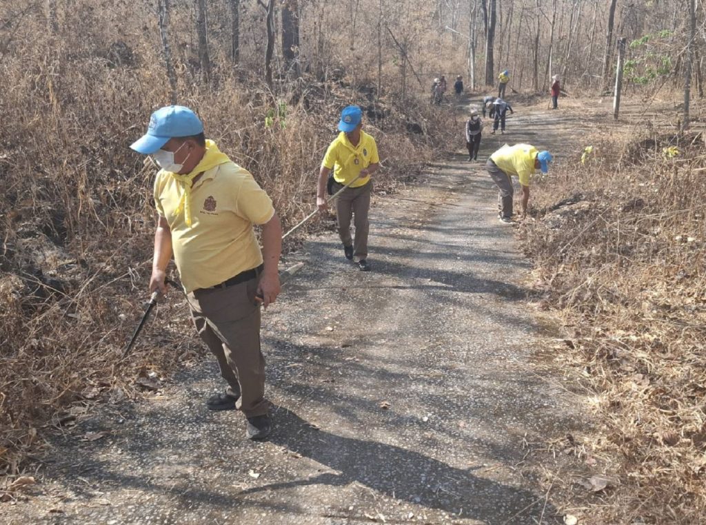 วันที่ 3 มีนาคม 2568 เวลา 08.00 น. โดยการอำนวยการ ของ พ.ต.อ.อัศวธรณ์ วงษ์สวัสดิ์ ผกก.สภ.แม่กา (3-2ก039) มอบหมายให้ พ.ต.ท.บุญช่วย แก้วมาลัย รอง ผกก.ป.สภ.แม่กา พร้อมข้าราชการตำรวจจิตอาสา สภ.แม่กา กต.ตร.สภ.แม่กา ร่วมกับผู้ใหญ่บ้านและประชาชนจิตอาสาบ้านแม่ตูบ ม.9 ต.โปงทุ่ง อ.ดอยเต่า ร่วมกิจกรรมจิตอาสาภัยพิบัติ ทำแนวกันไฟป่า ป้องกันและแก้ไขปัญหาไฟป่าและหมอกควัน บริเวณพระธาตุและบริเวนโดยรอบวัดแม่ตูบ มีประชาชนจิตอาสาเข้าร่วมประมาณ 150 คน