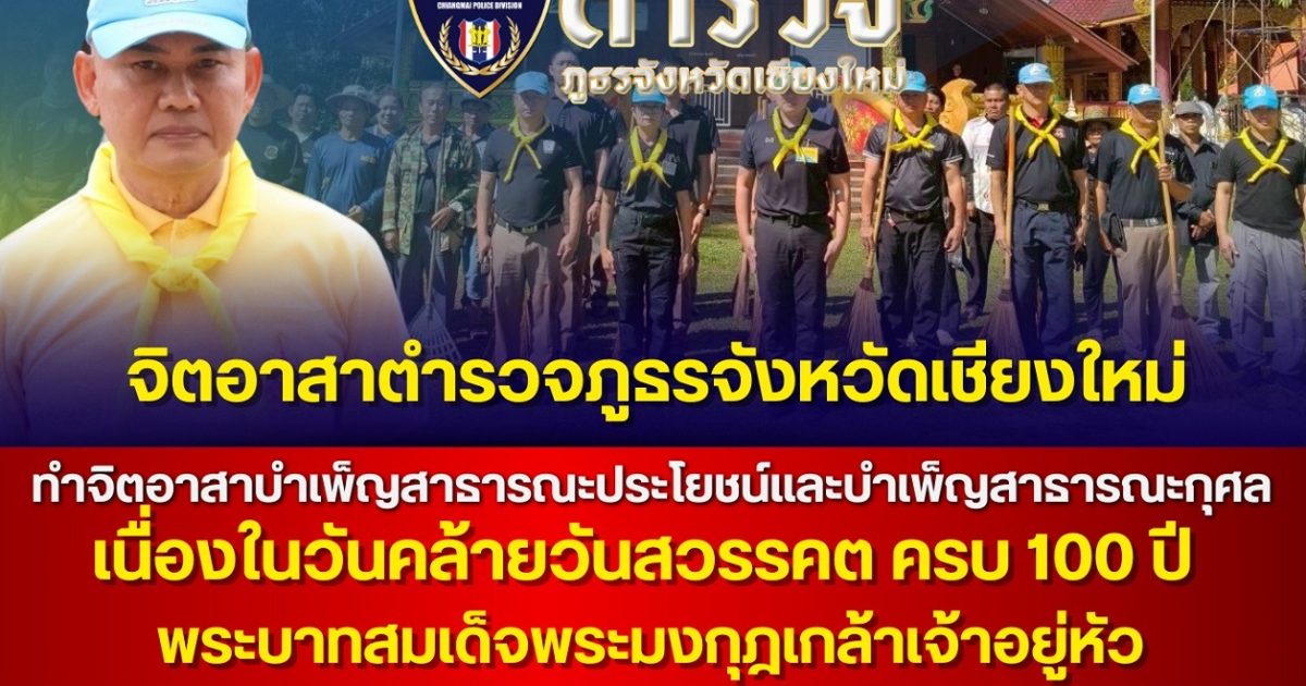 วันพุธ ที่ 26 พ.ย. 2568 เวลา 10.00 น. พล.ต.ต.ยุทธนา แก่นจันทร์ ผบก.ภ.จว.เชียงใหม่ มอบหมายให้ พ.ต.ท.หญิงดาวลอย ดุมกลาง รอง ผกก.ฝอ.(จิตอาสา) ภ.จว.เชียงใหม่ นำจิตอาสา ฝอ.ภ.จว.เชียงใหม่ พร้อมด้วยข้าราชการตำรวจจิตอาสา สภ.แม่ริม ,ประชาชนจิตอาสา ม.4 บ้านแม่ขิร่วมทำกิจกรรมจิตอาสาบำเพ็ญสาธารณะประโยชน์และบำเพ็ญสาธารณะกุศล แสดงความจงรักภัคดี และน้อมรำลึก วันที่ 25 พฤศจิกายน 2568 วันคล้ายวันสวรรคต ครบ 100 ปี พระบาทสมเด็จพระมงกุฎเกล้าเจ้าอยู่หัว วันที่ 24 พฤศจิกายน 2568 วันคล้ายวันประสูตรครบ 100 ปี ของสมเด็จพระเจ้าภคินีเธอ เจ้าฟ้าเพชรรัตนราชสุดาสิริโสภาพัณวดีเนื่องในวันปิยมหาราช ณ วัดแม่ขิ ต.แม่แรม อ.แม่ริม จ.เชียงใหม่