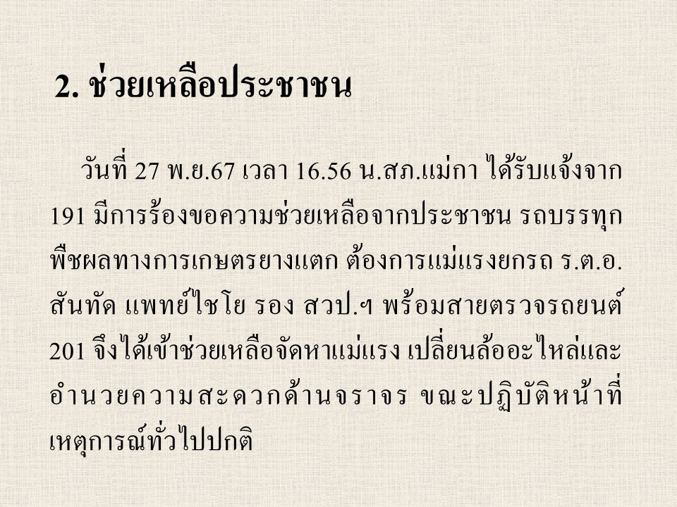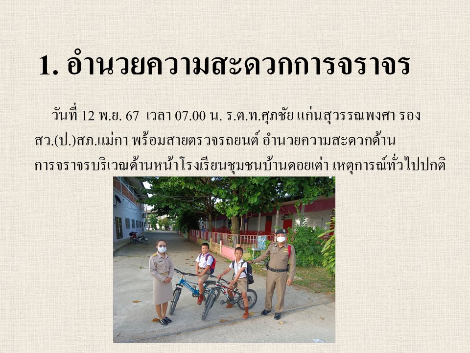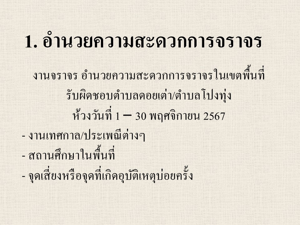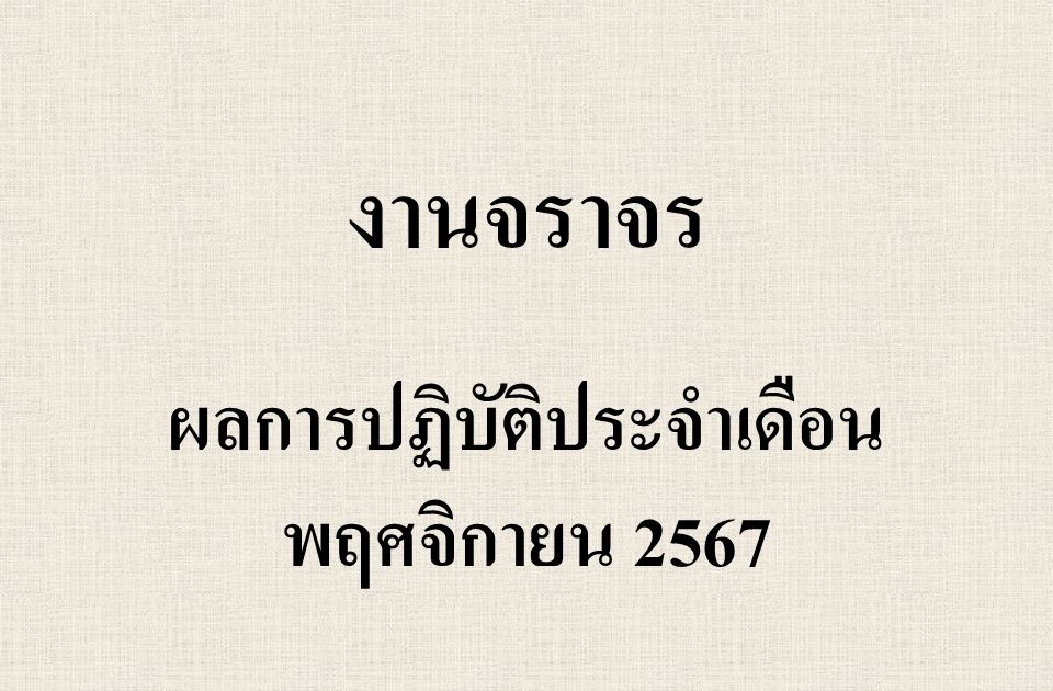 ผลการปฏิบัติงานจราจร พฤศจิกายน 2567 1 ธันวาคม 2567 โดย admmaeka / งานจราจร รูปแบบไฟล์ PDF รูปแบบไฟล์ WORD Post Views: 12 FacebookFacebookXXLINELine