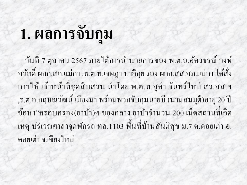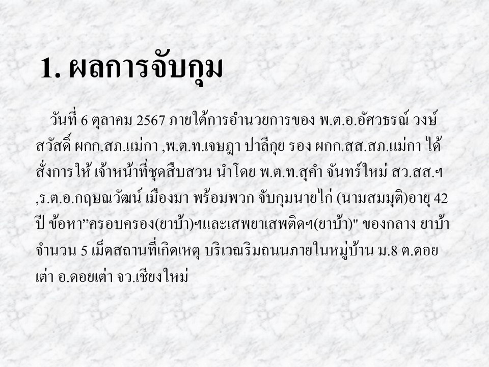 ผลการปฏิบัติงานสืบสวน ตุลาคม 2567 1 พฤศจิกายน 2567 โดย admmaeka / งานสืบสวน รูปแบบไฟล์ PDF รูปแบบไฟล์ WORD Post Views: 10 FacebookFacebookXXLINELine