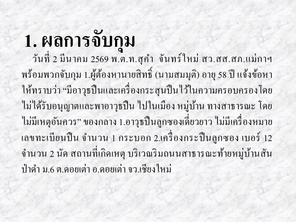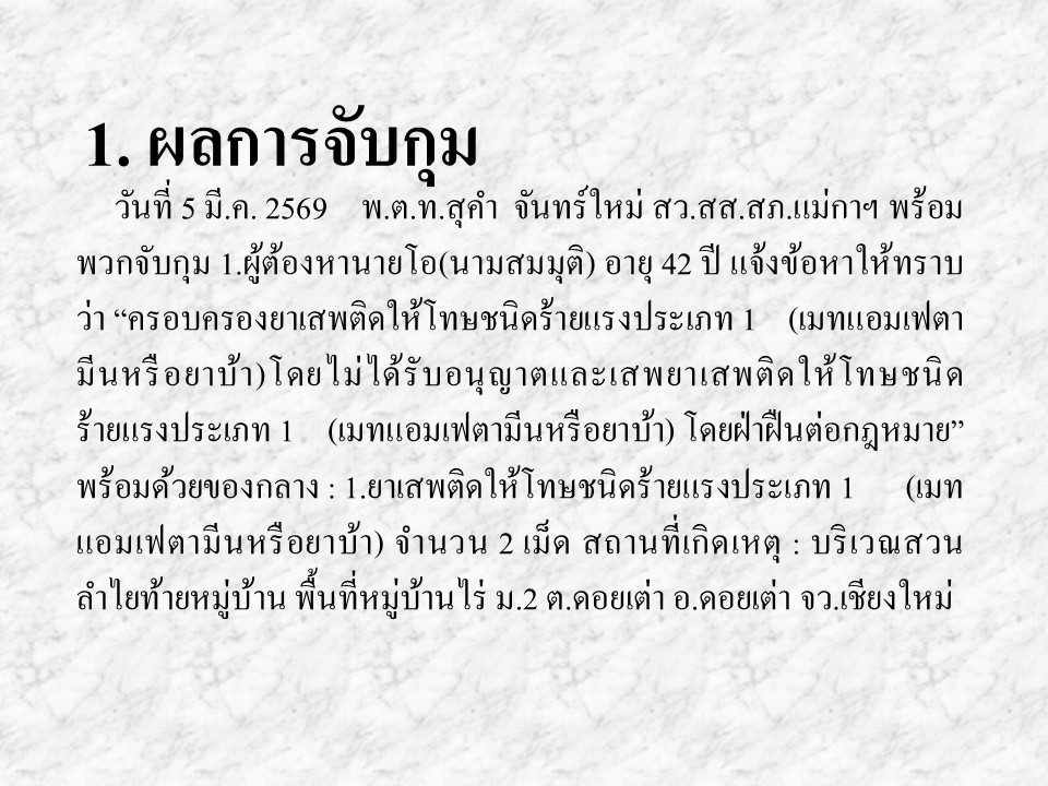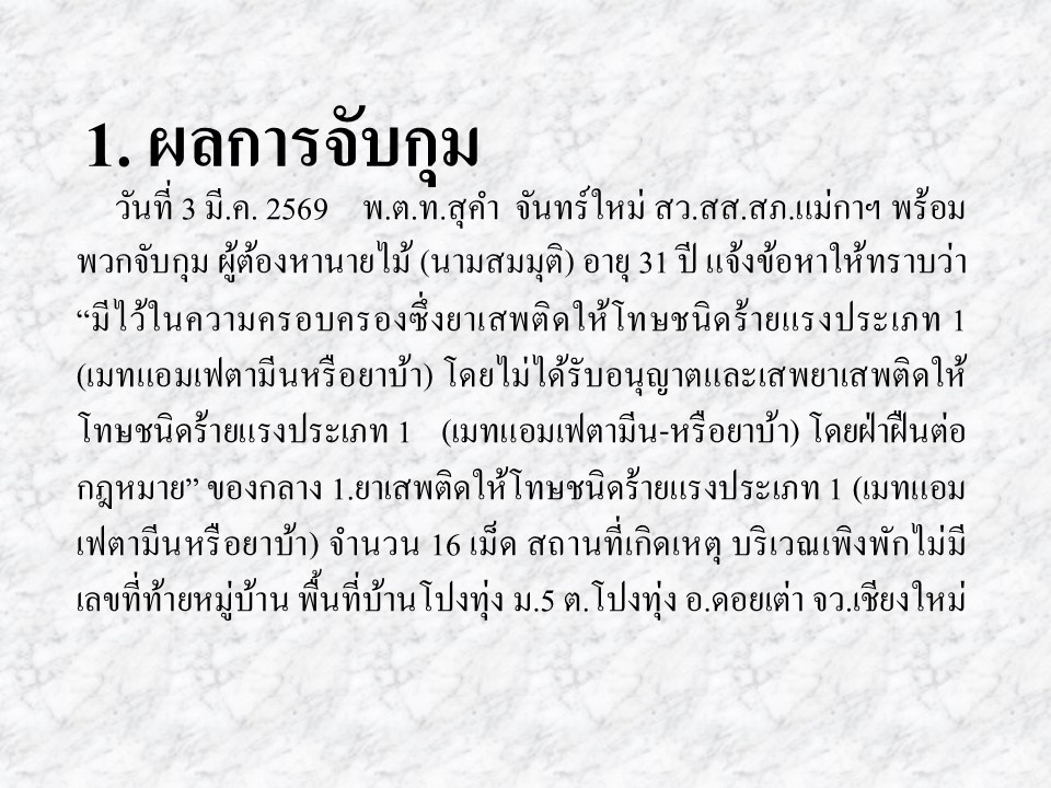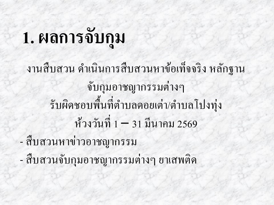 ผลการปฏิบัติงานสืบสวน มีนาคม 2569