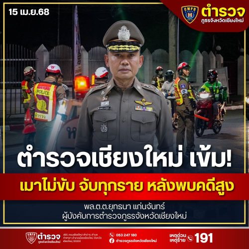 ตร.เชียงใหม่ลุยเข้ม “เมาไม่ขับ” สงกรานต์! ตำรวจตั้งด่านตรวจทุกเส้นทาง สั่งจับจริงไม่มีข้อยกเว้น