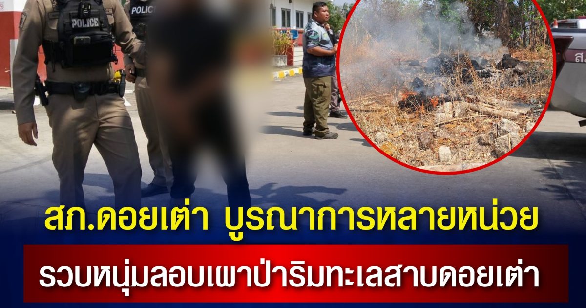 สภ.ดอยเต่า และ สภ.แม่กา จว.เชียงใหม่ ร่วมฝ่ายปกครองและหลายหน่วยงาน รวบหนุ่มลอบเผาป่าริมทะเลสาบดอยเต่า หัวหมออ้างเผาไม่ลามถือว่าไม่ผิด