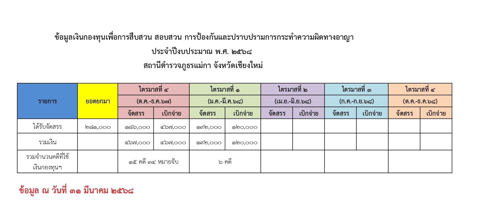 O13 ข้อมูลเงินกองทุนเพื่อการสืบสวน สอบสวน การป้องกันและปราบปรามการกระทำความผิดทางอาญา