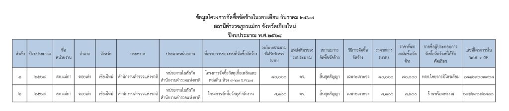 แบบสรุปผลการดำเนินการจัดซื้อจัดจ้างในรอบเดือน ธันวาคม 2567