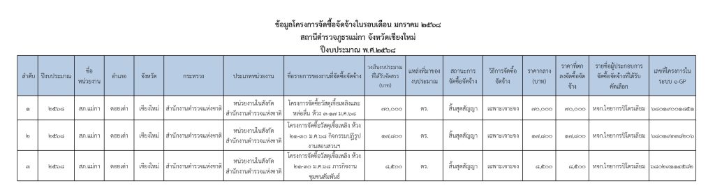 แบบสรุปผลการดำเนินการจัดซื้อจัดจ้างในรอบเดือน มกราคม 2568