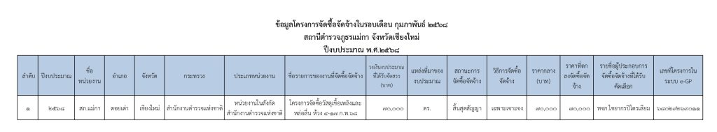 แบบสรุปผลการดำเนินการจัดซื้อจัดจ้างในรอบเดือน กุมภาพันธ์ 2568