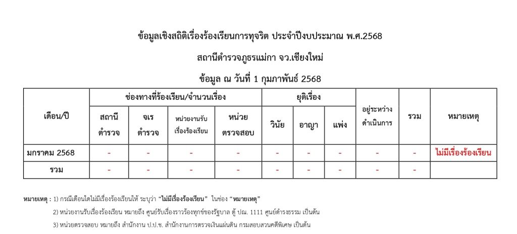 ข้อมูลเชิงสถิติเรื่องร้องเรียนการทุจริต เดือนมกราคม 2568
